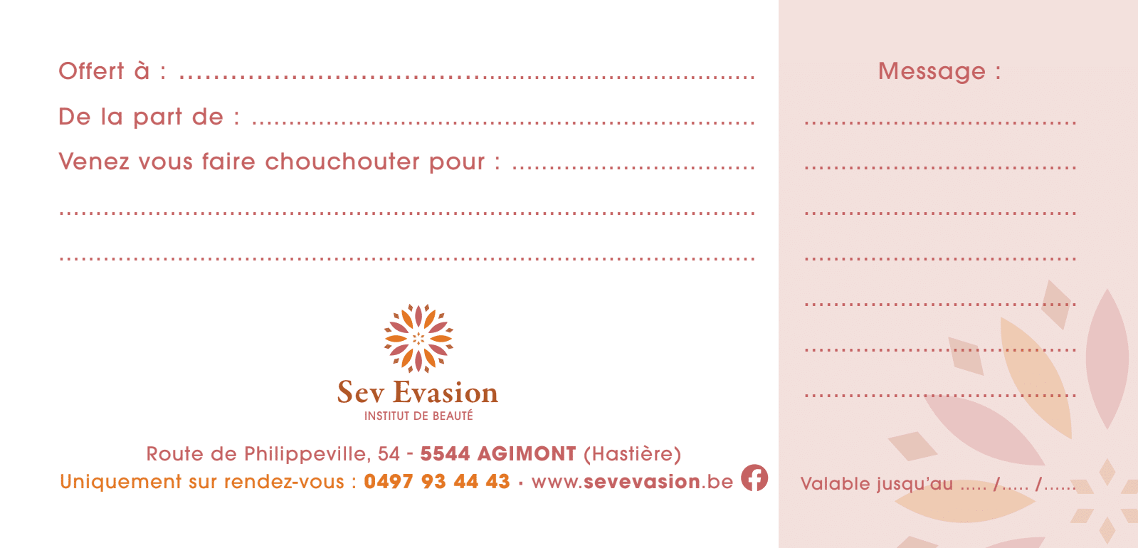 Remplissez le formulaire pour commander votre bon cadeau en ligne.